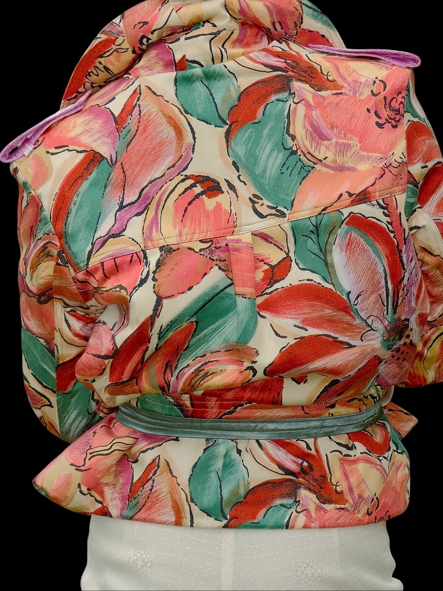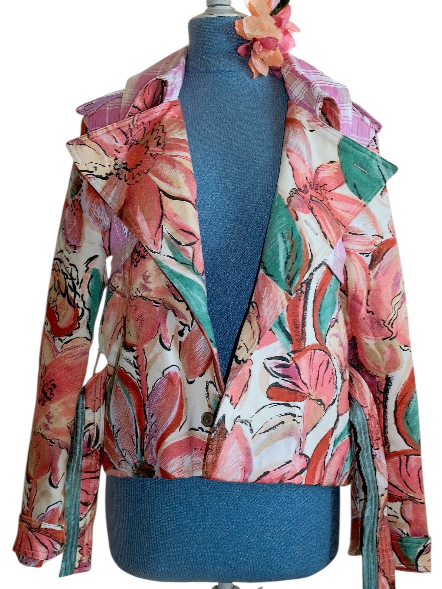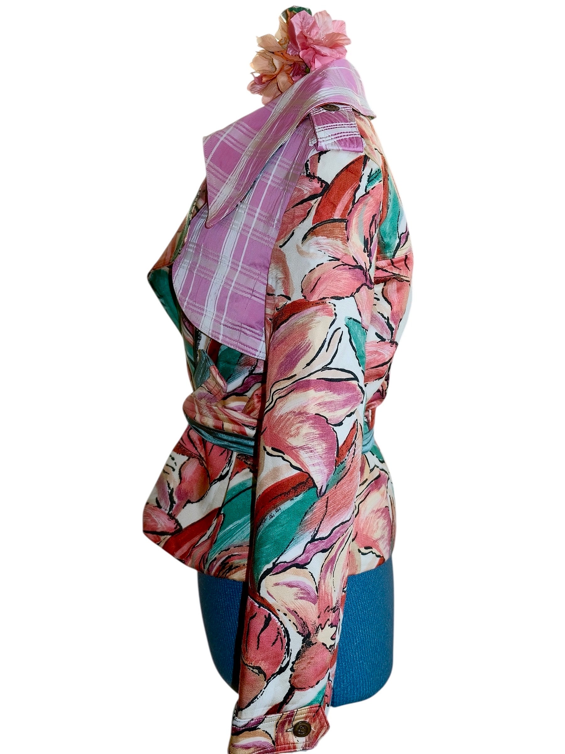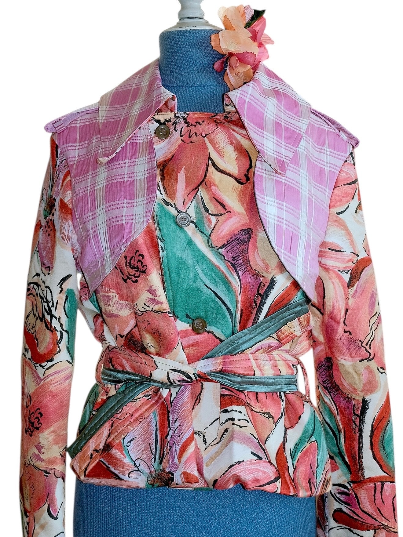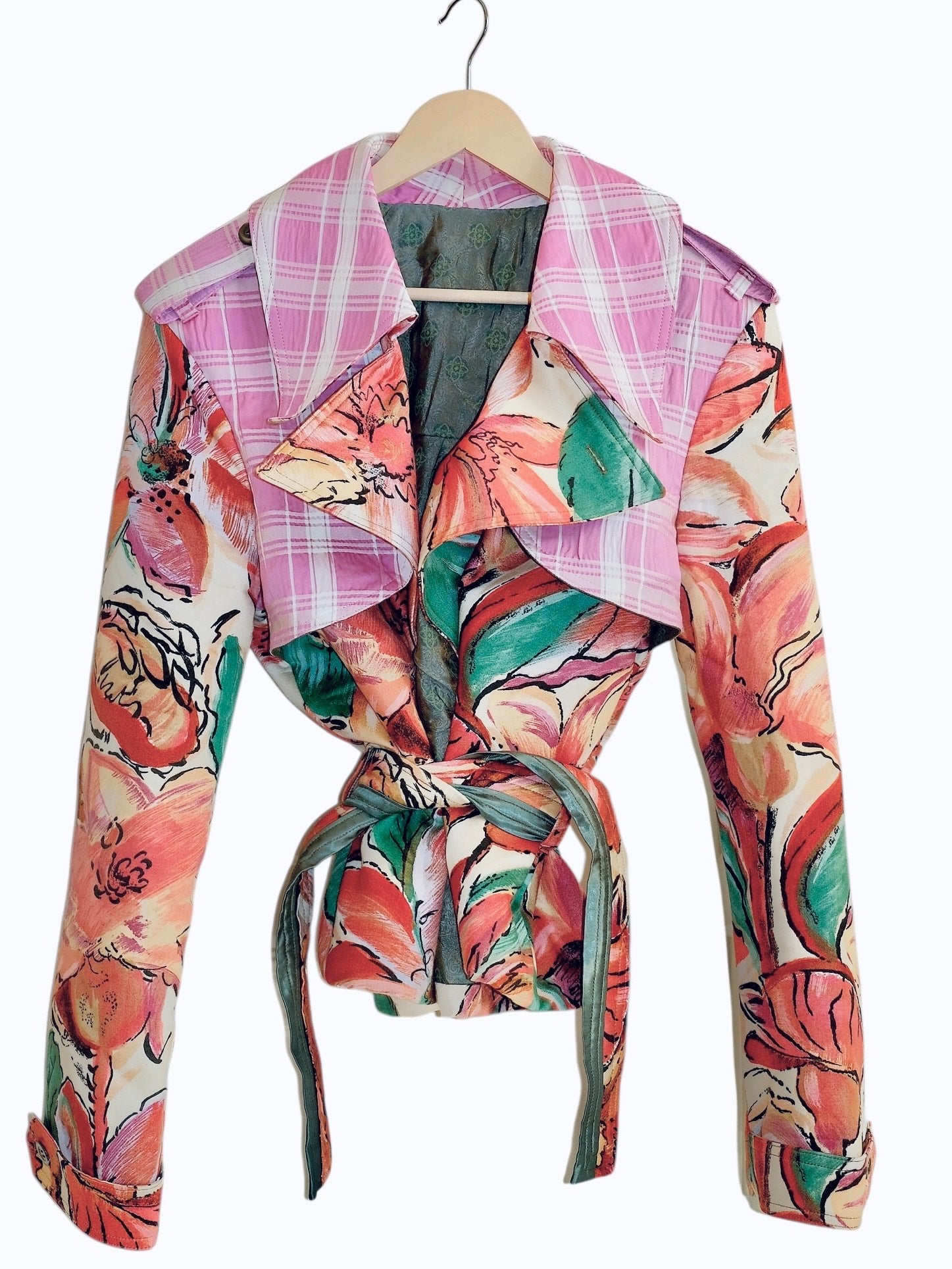 One of a kind. Handcrafted and 100 % recycled. Made from mixed recycled materials.Buttons: Grey mother of pearl (vintage)Lined with a quilted vintage lining. All the materials are curated and recycled. The finish is in top condition and feels like new.